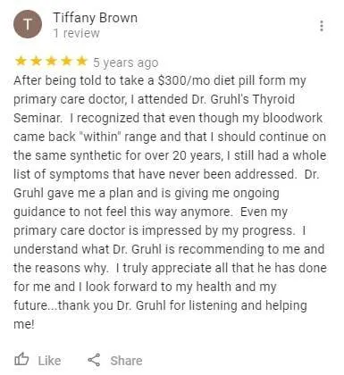 In 2010, Dr. Gruhl became a certified Cellular Detoxification Specialist, and completed the basic Nutrition Response Testing training. He continues to attend post-graduate training in Functional Blood Chemistry, Functional Endocrinology, and Functional Immunology.